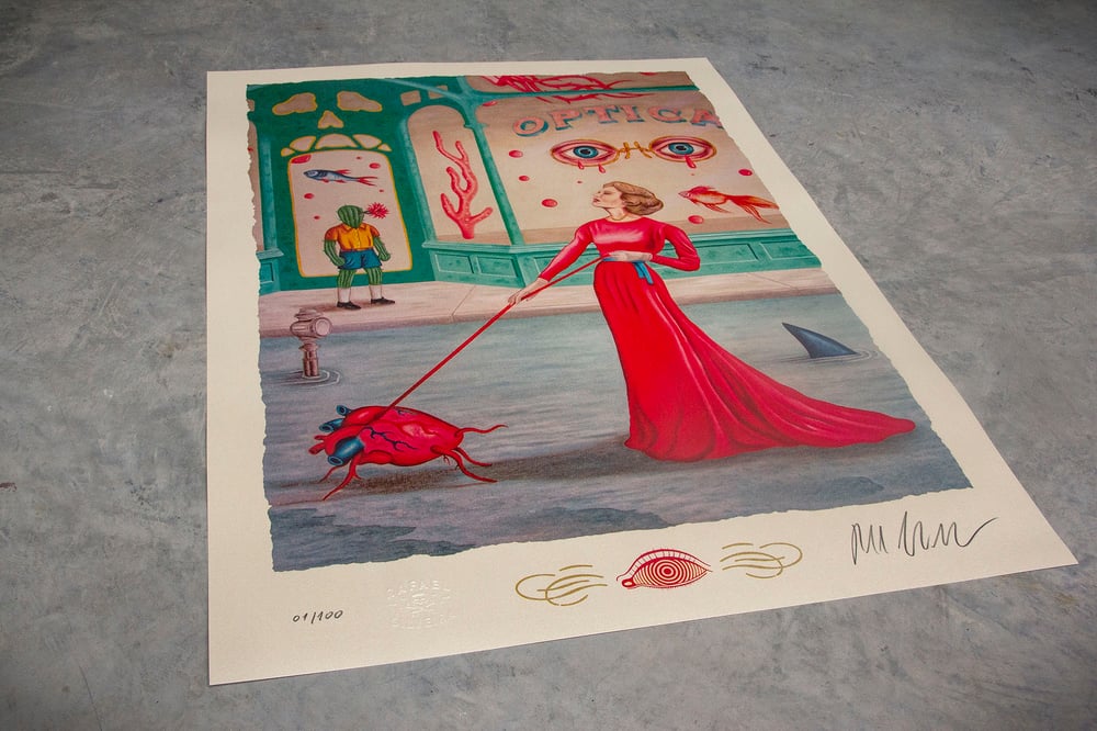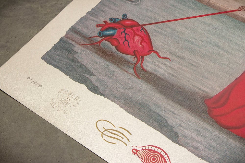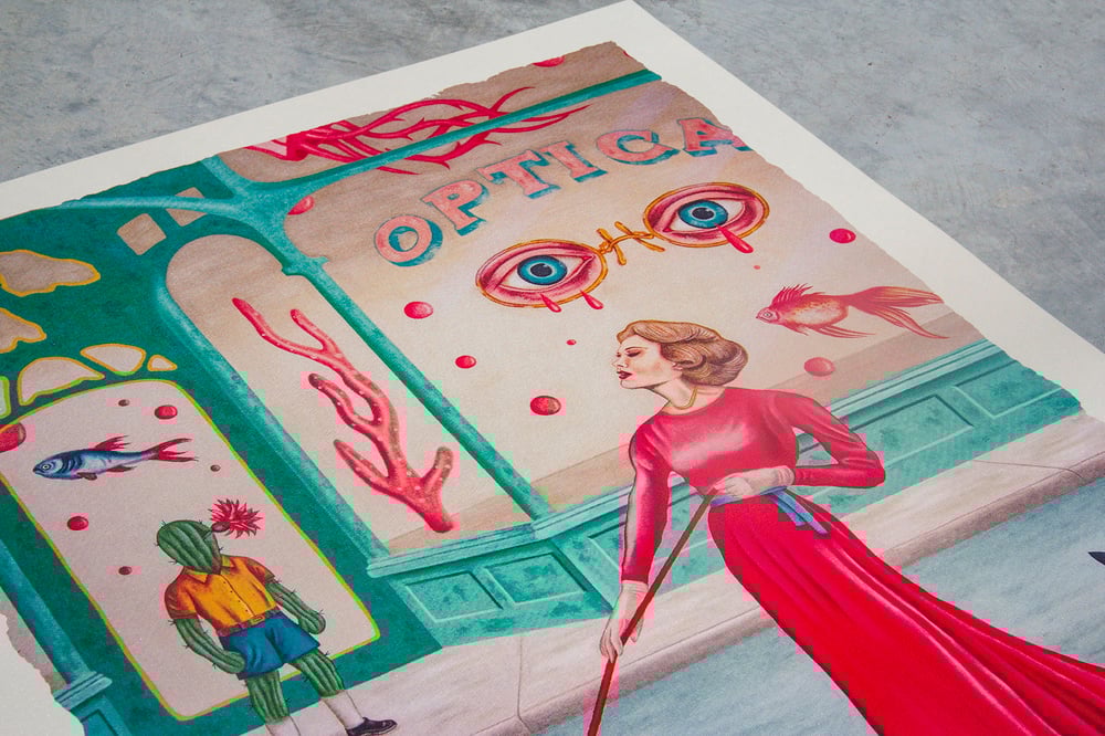 In this edition I am using a special paper with tiny metallic particles that gives a very cool texture, a discreet shine (between gold and cooper) depending on the angle you look and the ambient light. The colors are also very vibrant, one of my favorite prints ever!